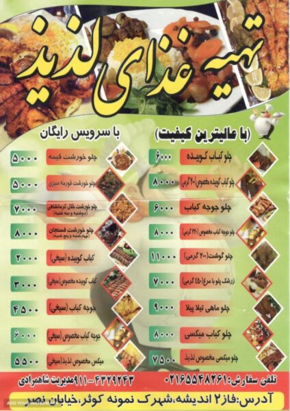 چلو جوجه کباب ۶۰۰۰ – چلو خورشت خلال کرمانشاهی (دوشنبه و سه شنبه) ٧۰۰۰