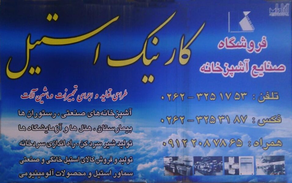 | آدرس | شهریار، بلوار هفده شهریور، فروشگاه صنایع آشپز خانه کارنیک استیل |